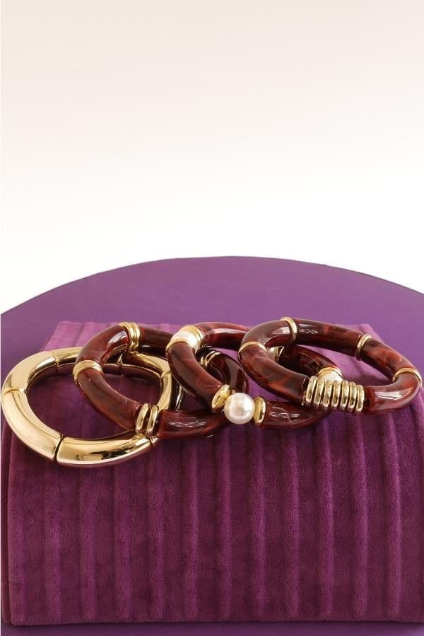 Bordo- Gold İnci Detay Akrilik 4'lü Bileklik Set