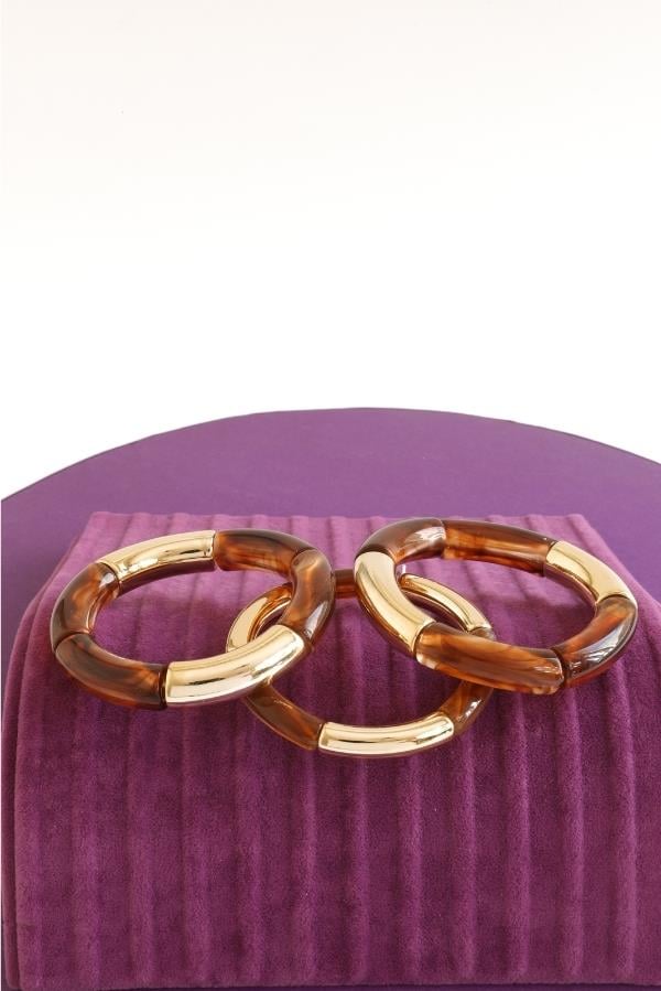 Kahve- Gold Geçişli Akrilik 3'lü Bileklik Set