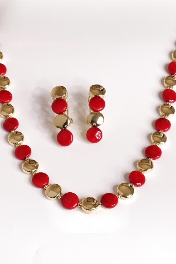 Kırmızı-God Renk Geçişli Tasarım Takı Seti