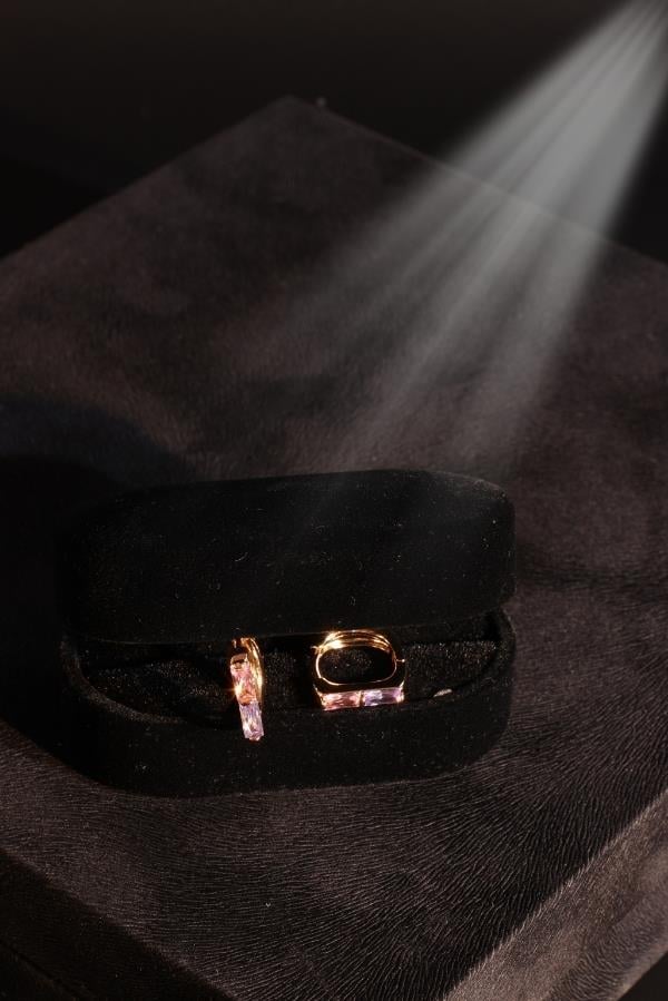 Pembe Mor Taşlı Küpe