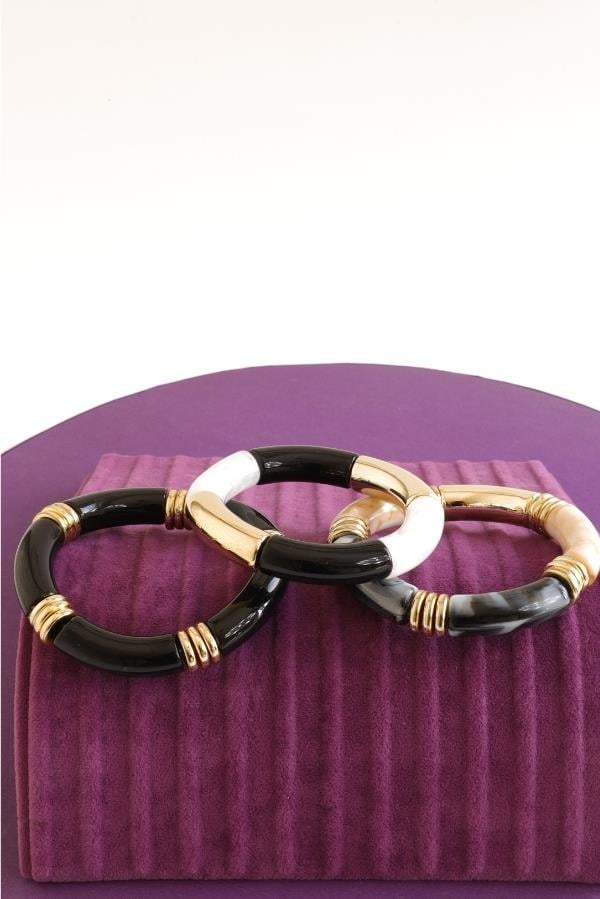Siyah-Gold Geçişli Akrilik 3'lü Bileklik Set