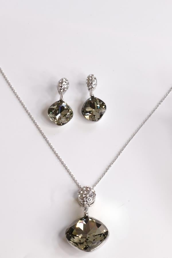 Swarovski Taş Detay Antrasit Renk Tasarım Takı Seti