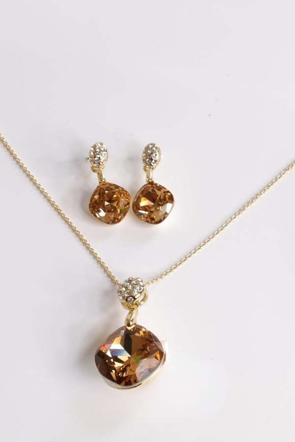 Swarovski Taş Kahverengi Tasarım Takı Seti