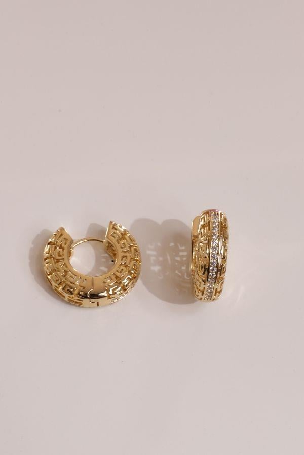 Taş Detay Gold Küpe